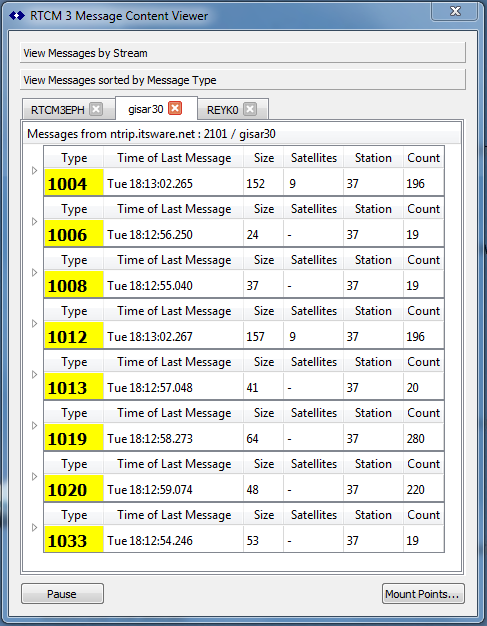 The RTCM3 Decoder dialog has been used to provide a way to determine what these streams provide.