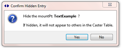 Because hiding a Caster Table entry can create problems for your end user who may expect to find it, SNIP presents a confirmation dialog when the check box is initially selected. Be sure and inform the users you wish to be able to connect to this stream of the name you select, including capitalization details.