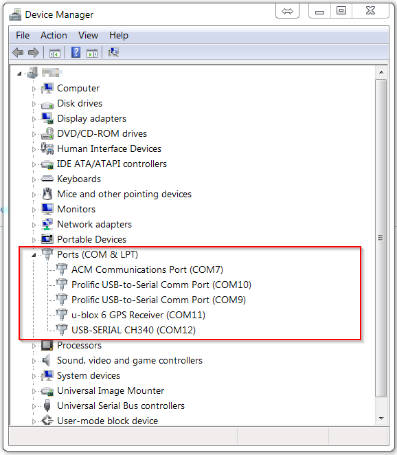 In the above image you can see that there are five serial ports present in this machine. All are in fact USB devices. And they come from four different device makers, and hence four different drivers have been used. Two of these devices come directly from the hardware built into GNSS devices, while the other three use common hardware cables.