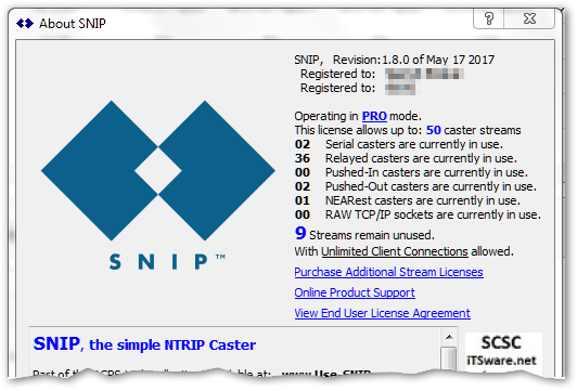Note:  From beta release 0.9.8 onward, the license model used in SNIP was changed to use a flexible licensing scheme to better support our paying customers.  In the current model a SNIP operator can operate as many simultaneous data streams allocated to whatever stream types best suit their needs up to their slot limit.  And additional data streams can be purchased using add-on licenses as deployment needs grow.