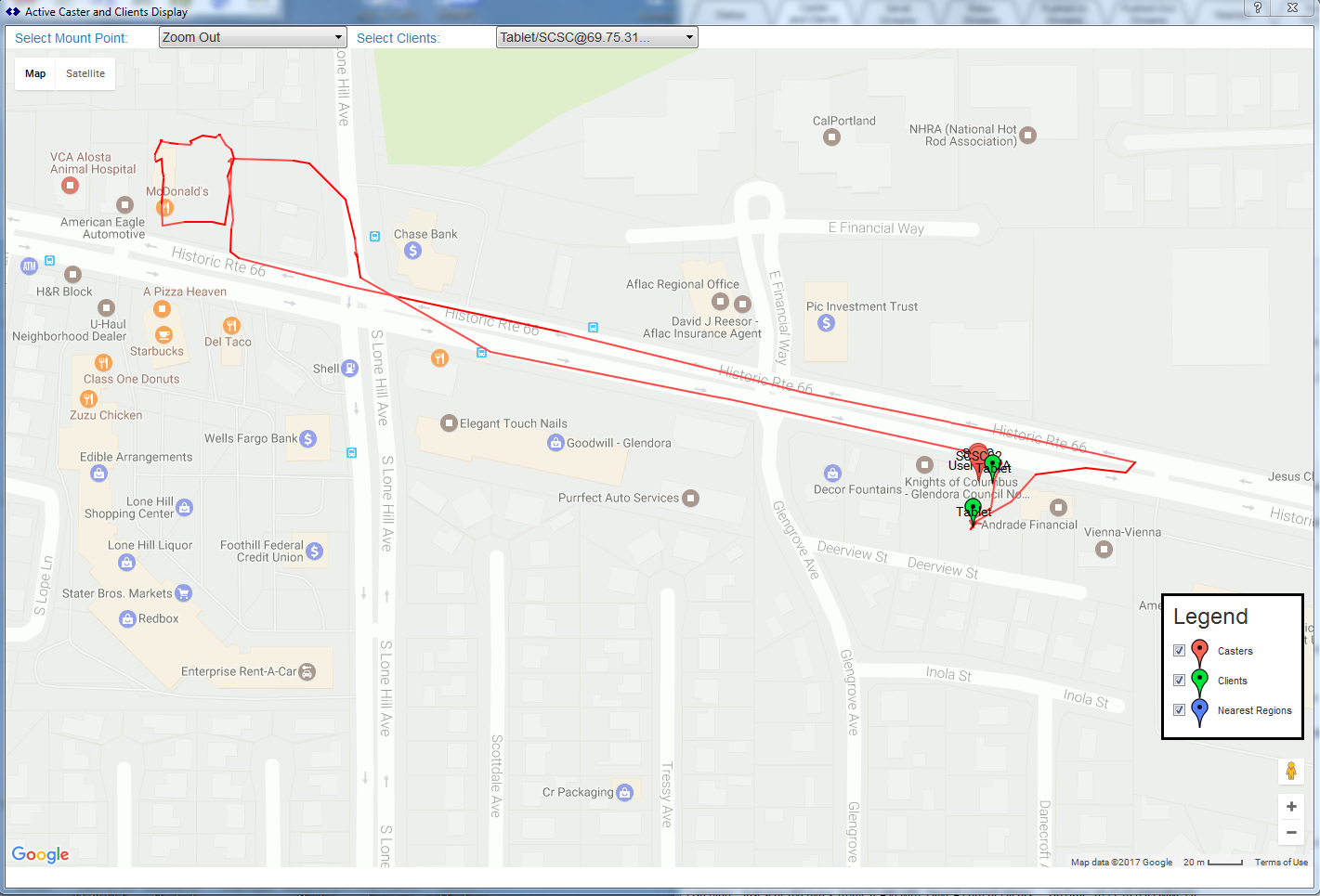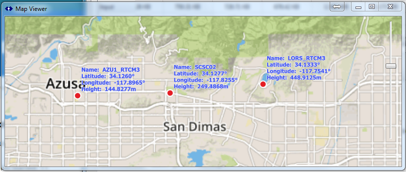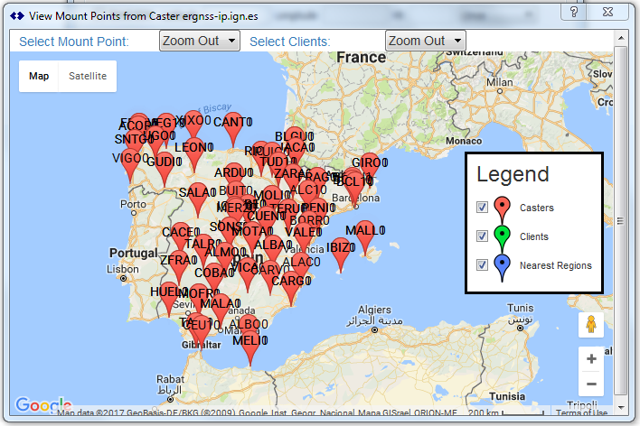 Similar to the basic functions found in BNC and RTKLIB and other such tools, the ability to display your current set of mountPts on a GIS base map is added using a 3rd party base map (using the common Google Map API).
