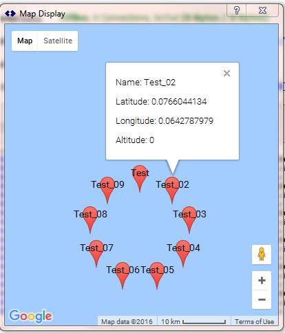 In SNIP some minor additional logic is also implemented when multiple reference stations are found to be at the zero-zero point. When this occurs, SNIP simply adjusts their displayed position on the map by a few km so that (when zoomed in) they no longer overlap. The display logic simply adjusted the latitude and longitude values by small amount to offset each point. By doing this the user can right-click on the mountPt of interest and examine its details further. Here is an example of this effect with nine data streams that would otherwise overlap.